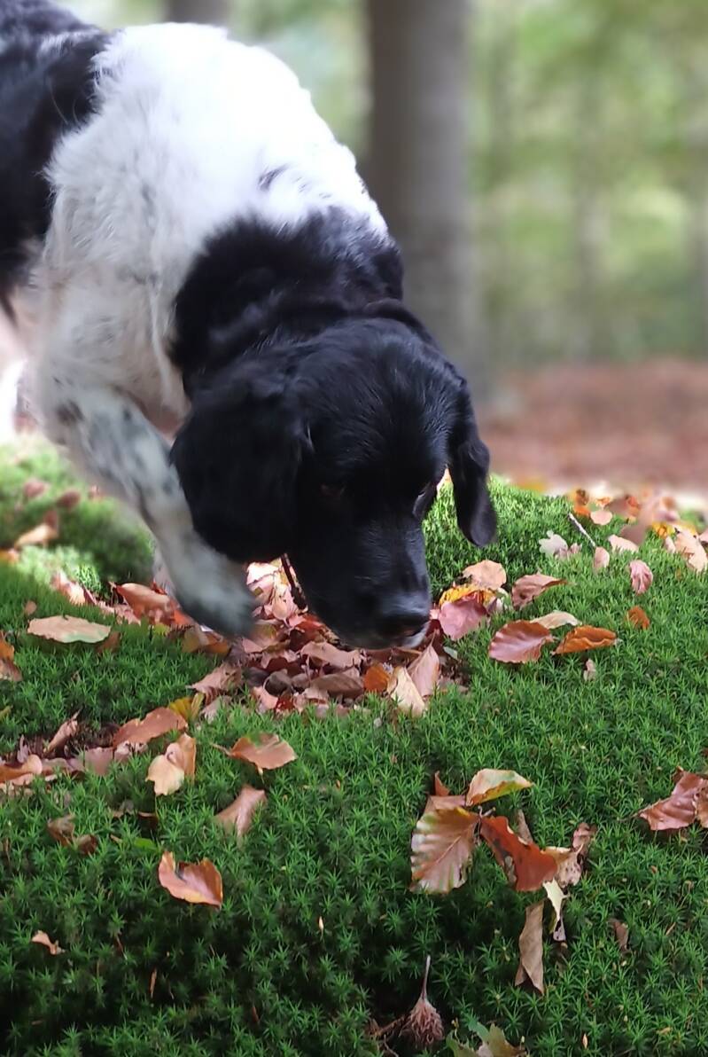 Ik heb op FaceBook een snuffelsessie voor 1 hond bij Sneupen bij Willem gewonnen. Op 4 november 2022 is het zover en gaan we naar Noordwolde. Eelke gaat met Renske en Fimke in de omgeving aan de wandel. Ik ben heel benieuwd hoe Baukje zich zonder de rest van de roedel gedraagt. Zodra ik de riem af doe gaat Baukje uit zichzelf op onderzoek uit, dit had ik vooraf niet verwacht. Ze vindt het fantastisch, alle brokjes zijn voor haar en ze kan in haar eigen rustige tempo snuffelen, zonder de hete adem van haar moeder en haar dochter in de nek.