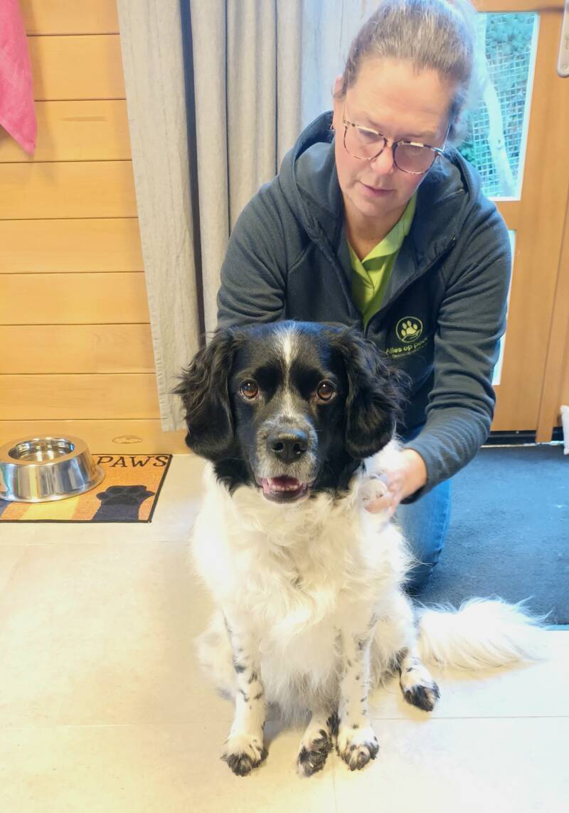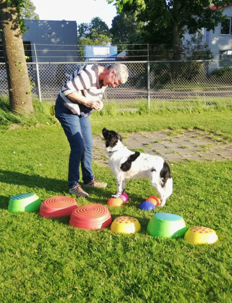 Sinds eind april zijn we weer op cursus bij Ester van Focus&Training, Leeuwarden, een groepje van slechts 2 honden, het voelt als privéles. We leren ademen op commando en oefenen met het ontspannen dealen met prikkels. Ook trainen we het ondergaan van dierenarts en/of verzorgende handelingen zoals kammen of nagels knippen. Fimke pakt alles heel goed op en thuis oefenen we het geleerde met Baukje.