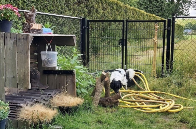 4 november 2022, Sneupen bij Willem : Fimke mag nog een rondje door de tuin om te checken of Baukje geen brokjes overgeslagen heeft. Fimke wordt ontzettend gelukkig van vrij rond kunnen lopen, onderzoeken en snuffelen, volgende keer maar een sessie voor haar boeken.